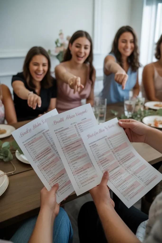 This one feels more personal, so I usually include it in smaller gatherings. I ask simple but meaningful questions about the bride’s life. Guests fill in their answers, and it often leads to funny or surprising moments. From what I’ve seen, this game works best when most guests already know the bride well.
