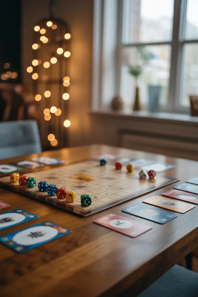 Organizing the board, dice, and cards neatly helps the game flow. I prefer wooden or neutral tables so colors pop. Warm overhead or fairy lights make the space inviting. A tidy setup also reduces distraction, letting everyone focus on the game.