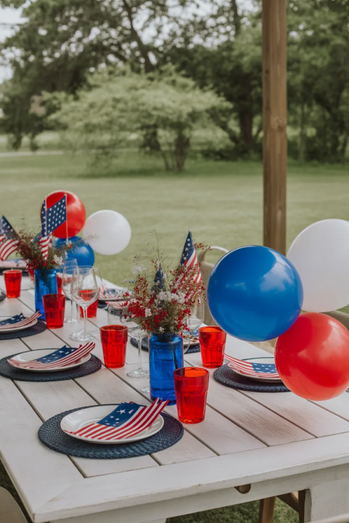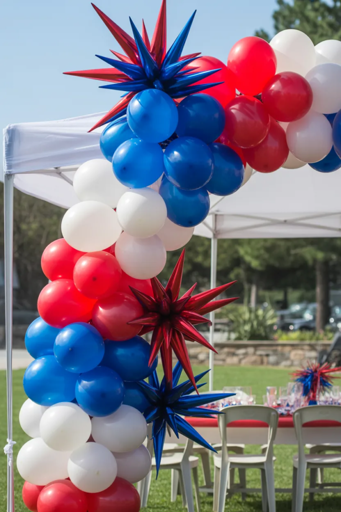 Stick to red, white, and blue, and create a simple arch or cluster. It works well as both decor and a photo spot.