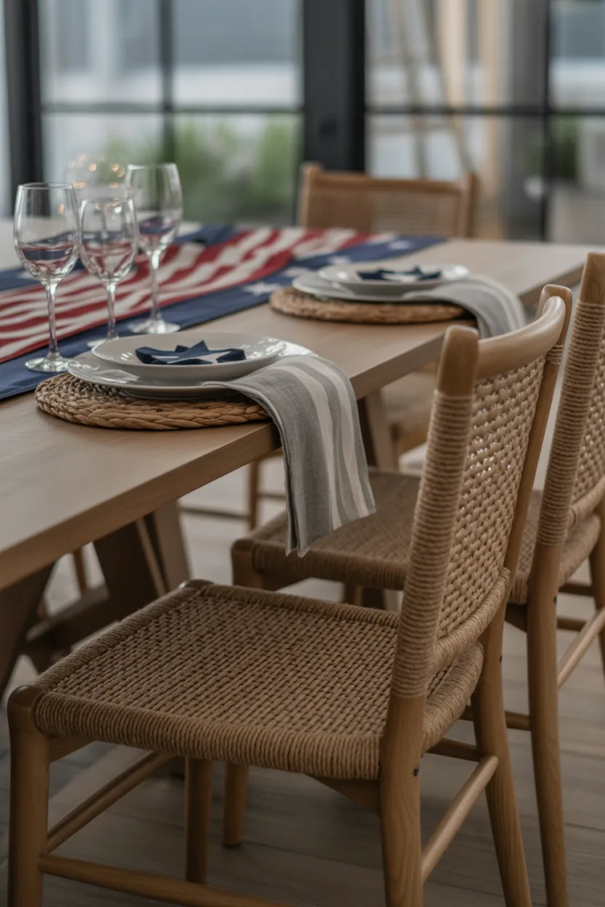 A simple centerpiece with soft colors and a few patriotic touches can look clean and elegant without feeling crowded.