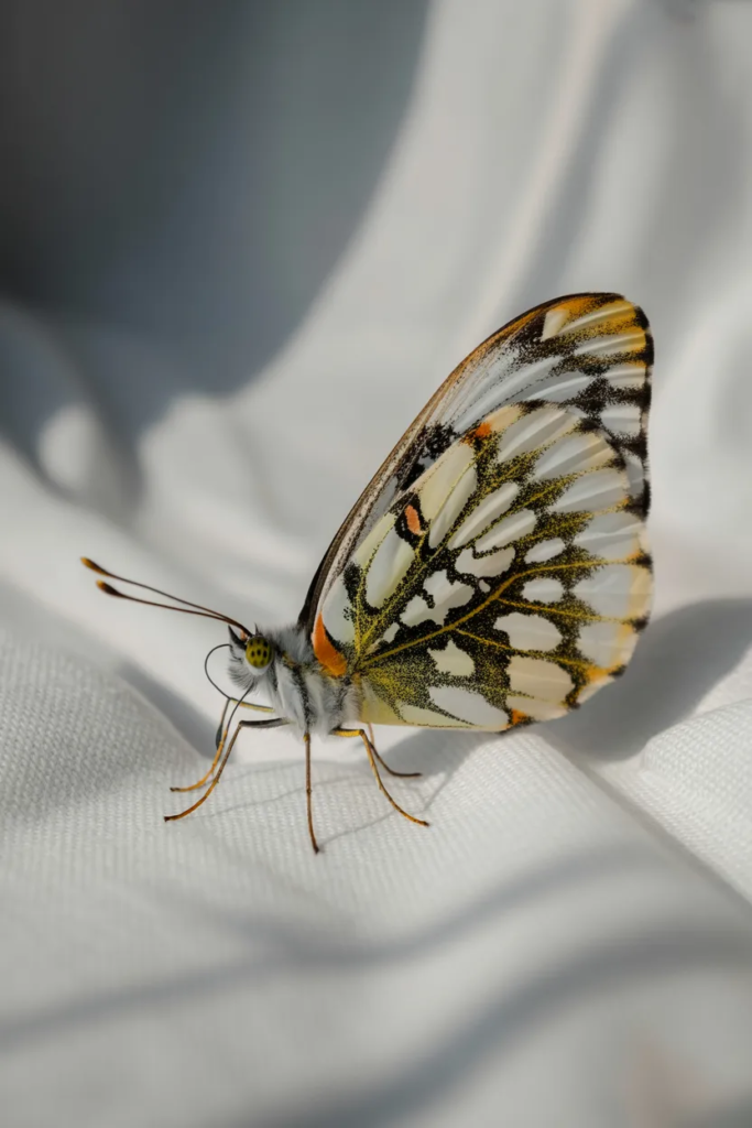 Soft, wide wings give this butterfly a calm and soothing appearance.