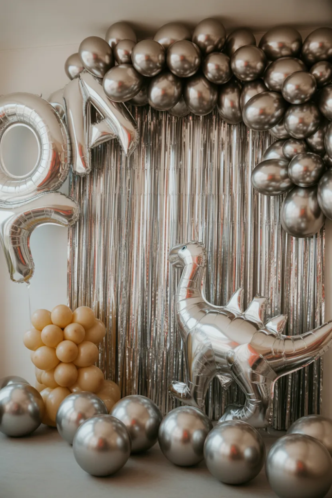 Metallic Balloon Backdrop with Dino Balloons