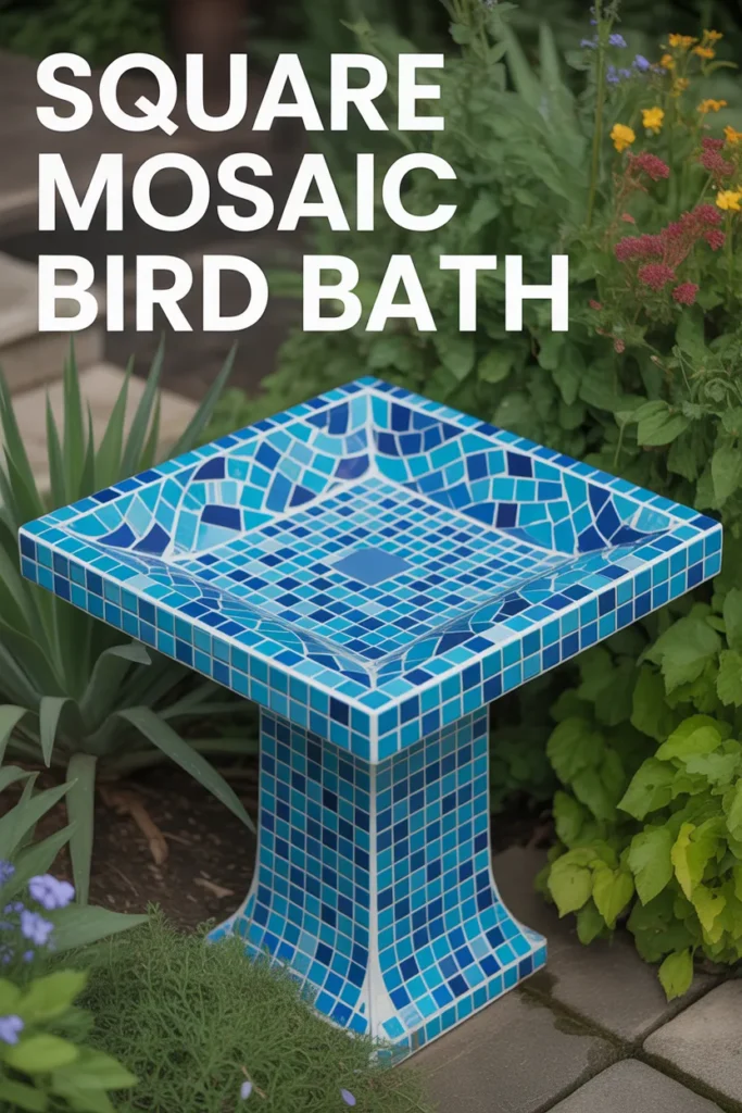 I use square shapes for more landing space. Tile patterns add visual detail. It works well in structured gardens. Birds can bathe comfortably.