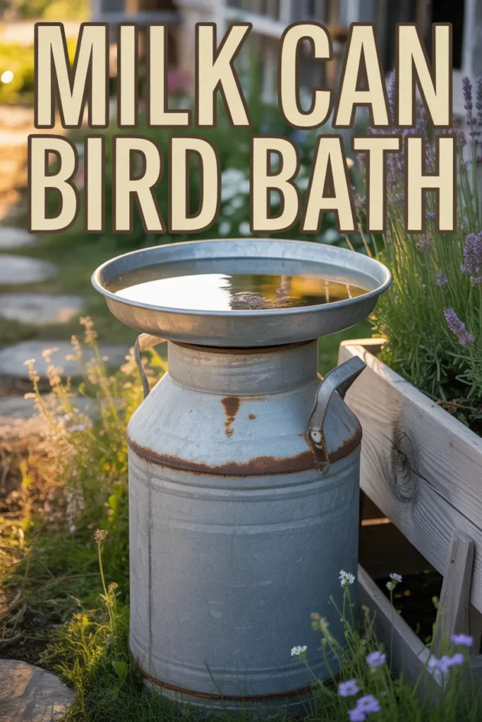 I often reuse old milk cans as bird bath stands. It gives a farmhouse-style look. I place a bowl on top and add stones inside for safety. It works well in rustic garden setups.