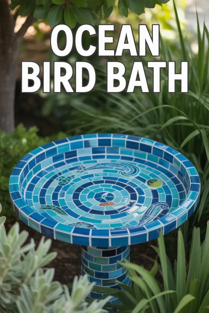 I like blue mosaic designs because they feel calming. Birds are naturally attracted to blue tones. I place them in shaded areas for comfort. It creates a peaceful garden corner.
