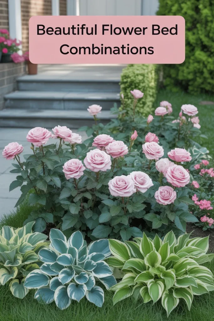 I prefer mixing textures. Roses add color, while hostas fill space and reduce empty patches.