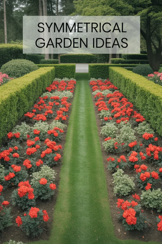 Balanced layouts always look expensive. Red flowers with green plants create a strong contrast.