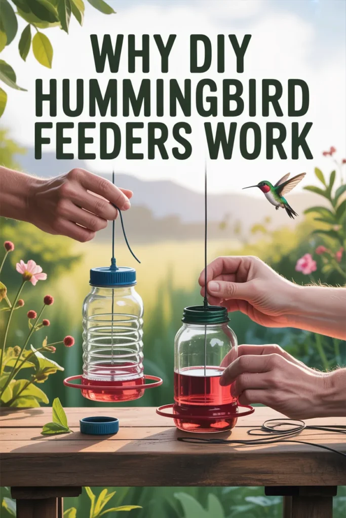 I created and tested different DIY hummingbird feeder ideas to attract more birds into my garden while keeping the process simple and budget-friendly. Most of these ideas use recycled bottles, glass jars, and wood pieces that are easy to find at home.