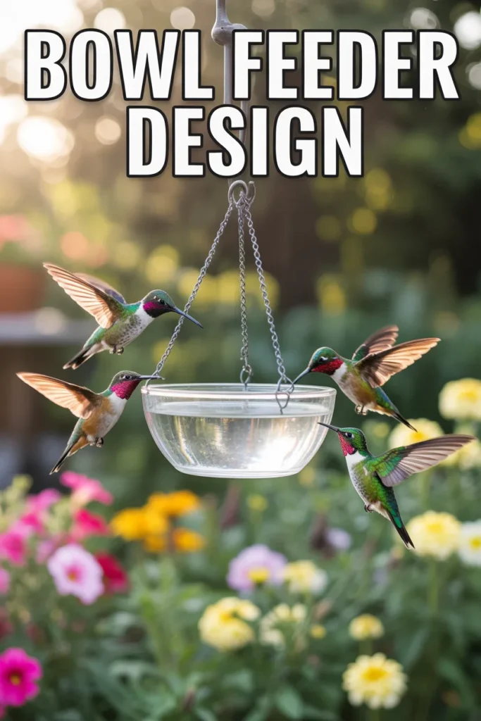 This design uses a simple metal ring with a glass container. I noticed that hanging feeders at eye level improved bird visits because hummingbirds feel safer when they can easily approach from open space.