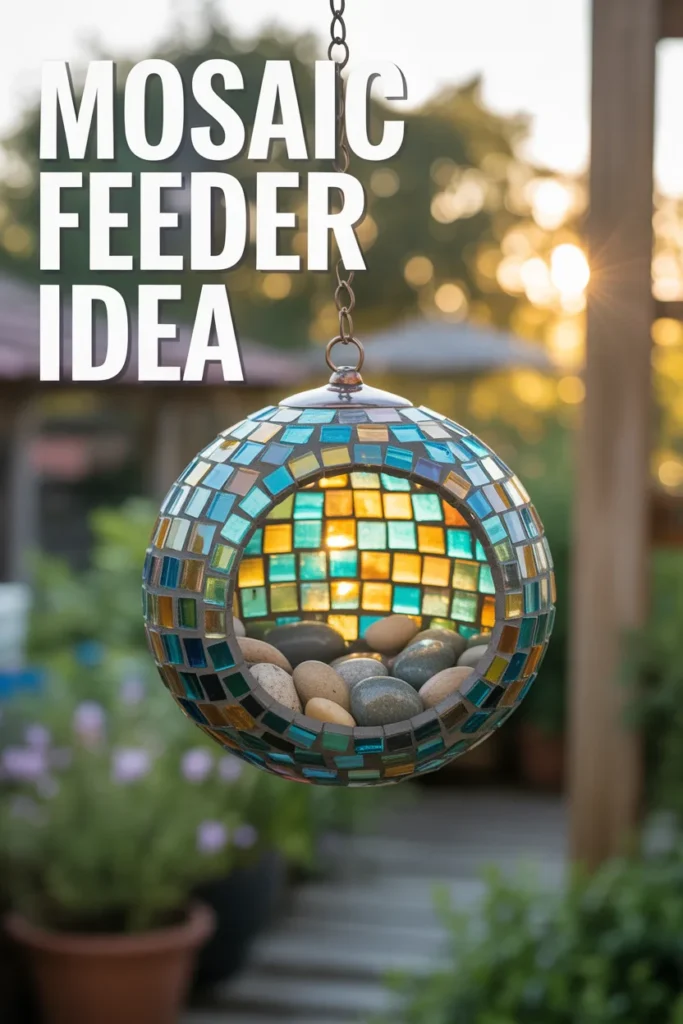This mosaic-style feeder reflects light in different directions. I noticed that sparkling surfaces naturally grab hummingbird attention faster.