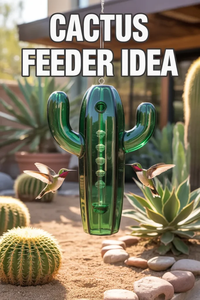 This cactus-style feeder blends naturally with plants. In my experience, textured green glass creates a strong visual contrast that helps birds spot it quickly.