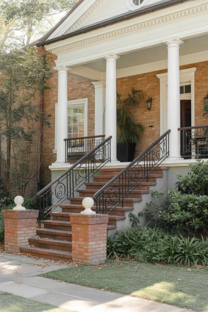 Adding plants or vines around the stairs makes the entrance more welcoming. Keeping both sides balanced improves the overall appearance.