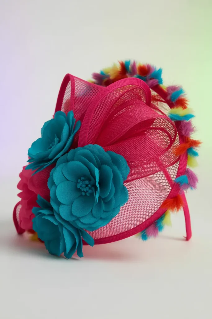 From my experience, styling matters just as much as making the fascinator. I always choose designs based on the event first because it guides color, size, and detail level. For daytime events like weddings or garden parties, I prefer soft shades like ivory, blush, or beige because they feel elegant and subtle. For bold events like horse races or evening parties, I use stronger colors like red, fuchsia, or metallic tones.