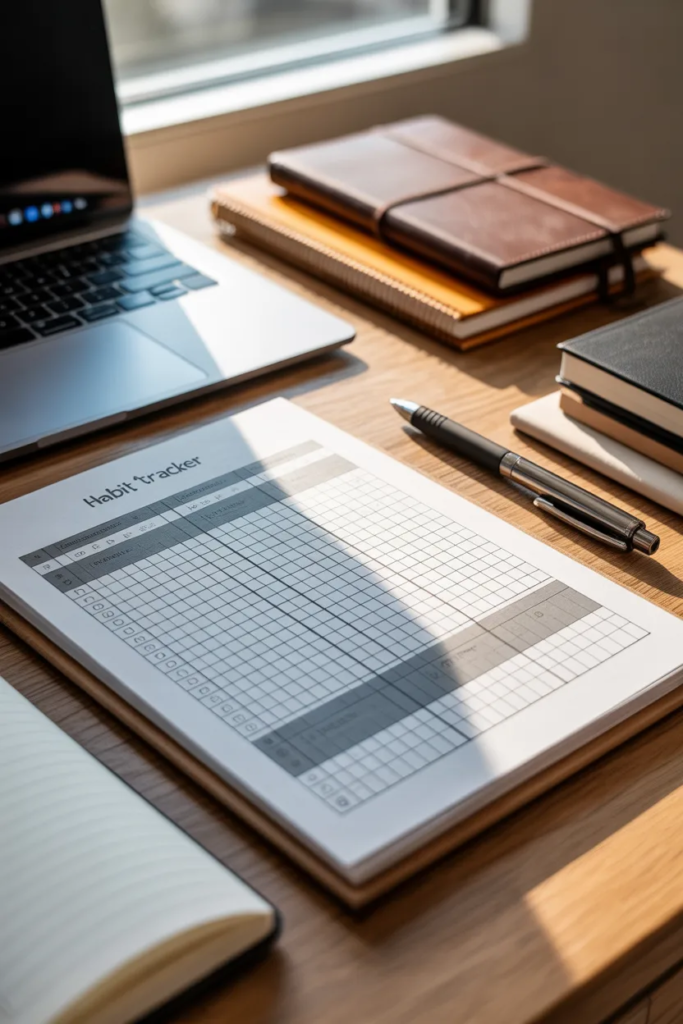 A habit tracker helps maintain motivation by showing gradual improvement over time.