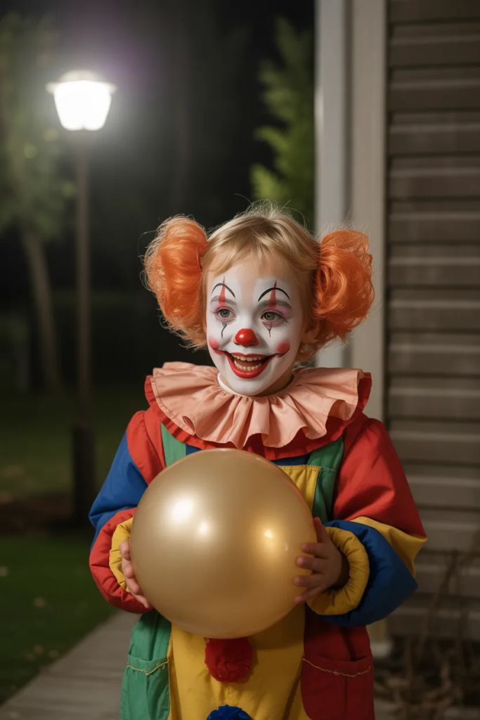 You don’t need much—just bold colors, face paint, and a few props like balloons. Keep lighting focused so the costume stands out without making things too dark.