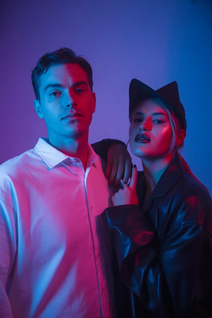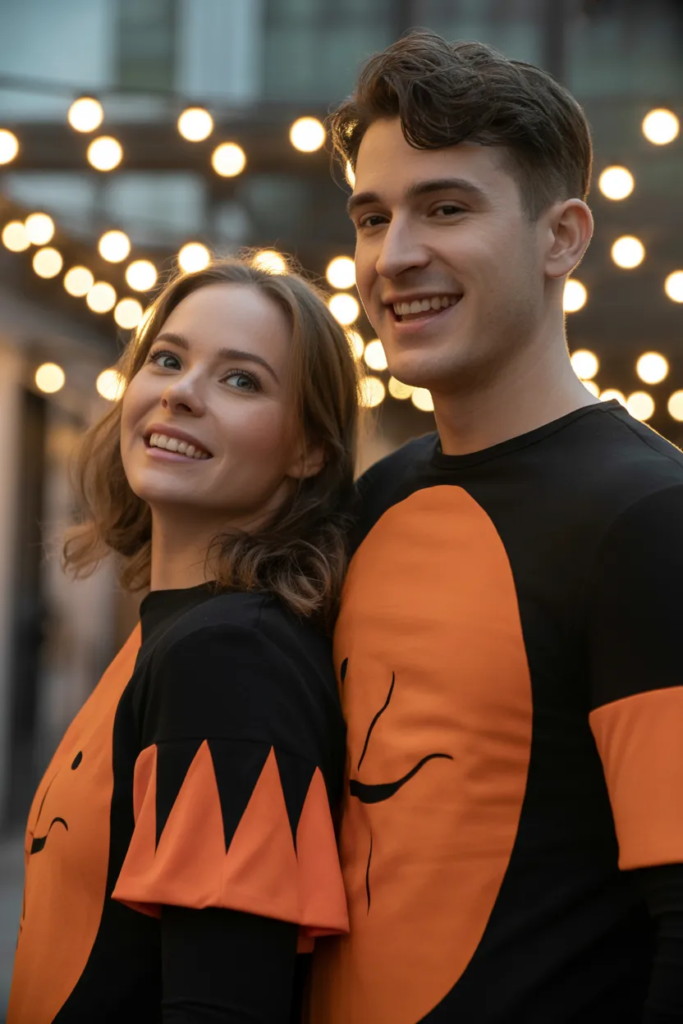 Dark outfits, candles, and a moody setup create a slightly romantic but still spooky atmosphere. Great for couples or themed photos.