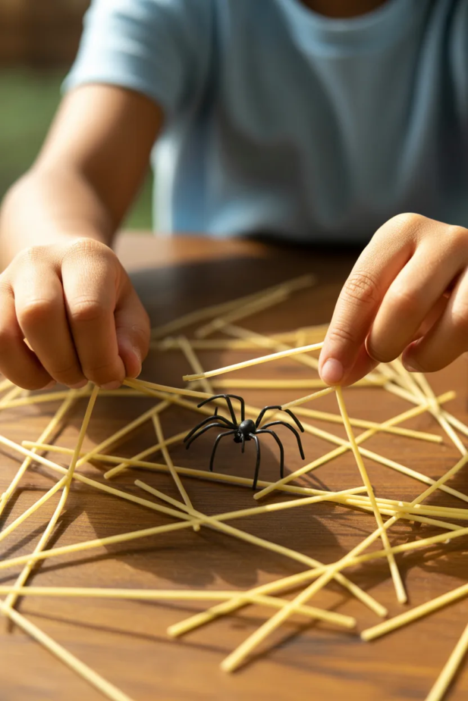 Use everyday items to create a “web” and challenge players to remove pieces without disturbing the center. It’s quick, easy, and surprisingly fun.