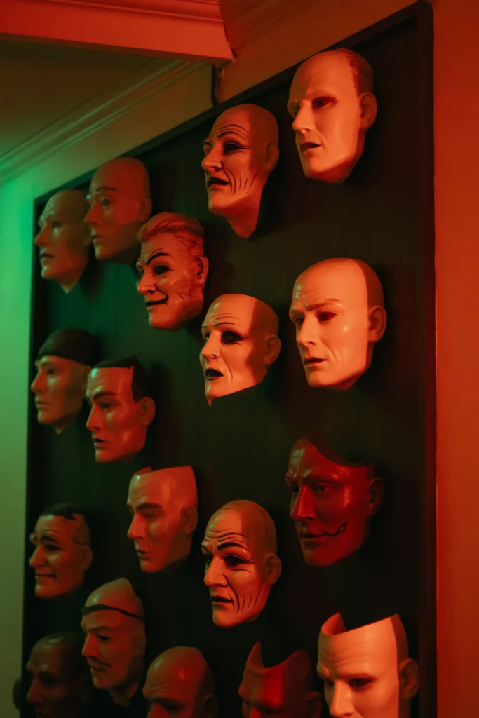 Hang different masks on a wall and use colored lighting to highlight them. It’s simple but looks impressive, especially in dim spaces.