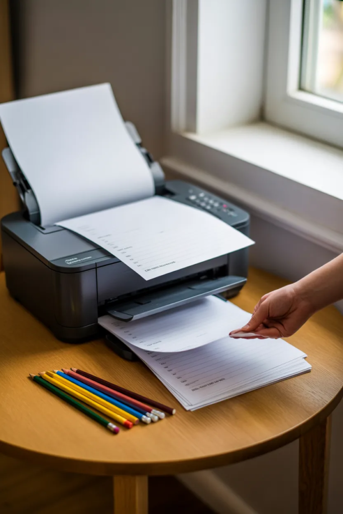 Start by downloading and printing the worksheets. If possible, use slightly thicker paper so it holds up better, especially for younger kids who tend to press harder.