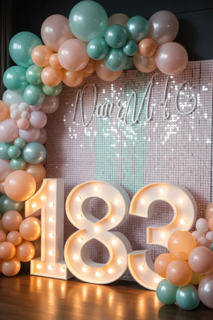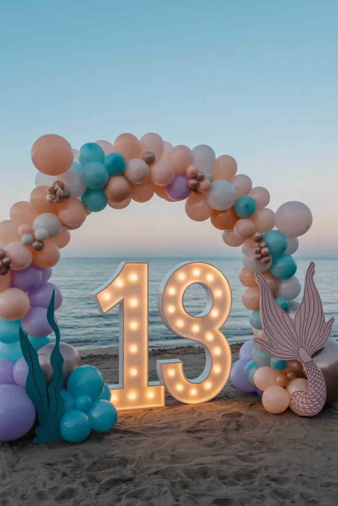 When I want a centerpiece, this is my go-to idea. The glowing numbers instantly highlight the birthday age. Adding a few coral props keeps the theme clear without making it feel crowded.
