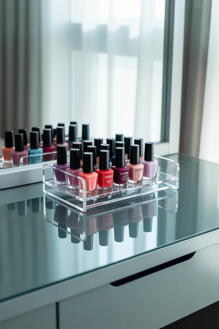 I like acrylic racks because they keep everything visible without making the space feel heavy. They are perfect for small vanity setups.