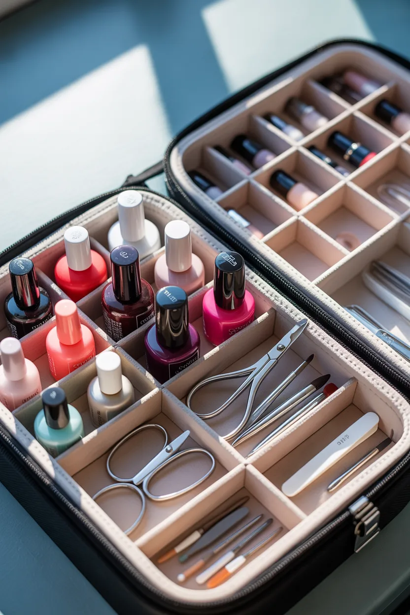 When I want everything in one place, I use a compartment case. It keeps my nail polish, tools, and supplies separated so nothing gets mixed up.