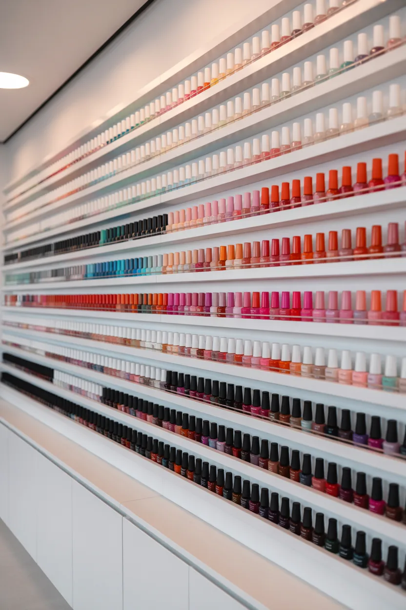 Sorting by color families makes it easier to choose a polish quickly. It also makes the setup look more organized overall.