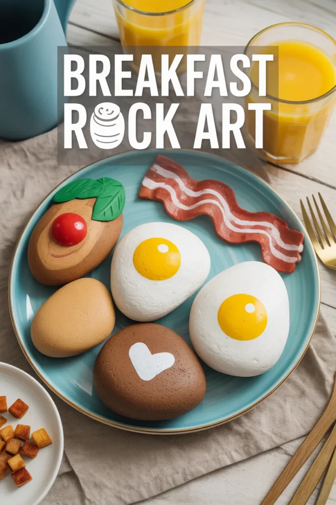 This is a fun and creative set I like making for display. I paint rocks like pancakes, eggs, and fruit. It adds a playful touch to kitchen shelves and always gets attention from visitors.