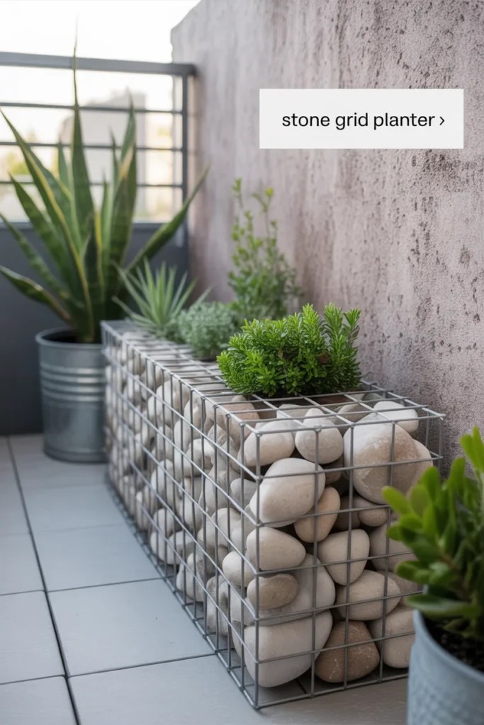 Stone grid planters are a creative DIY project I like. The pebble texture gives a natural industrial look.