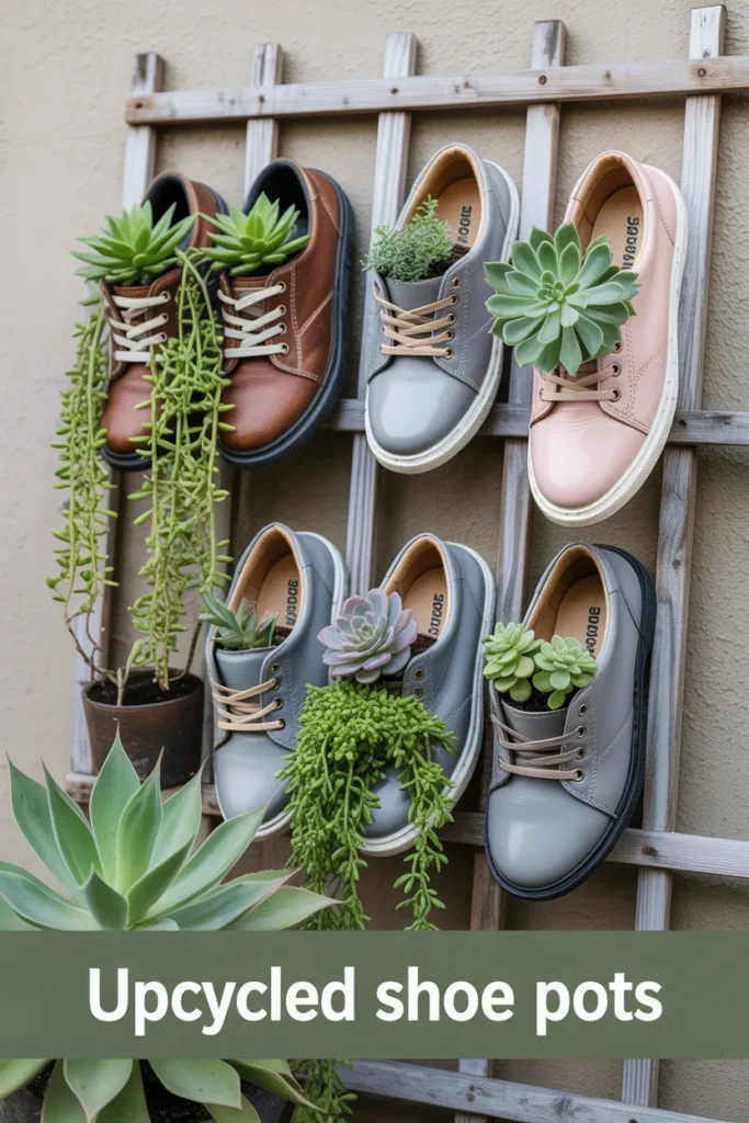 25. Upcycled Shoe Pots