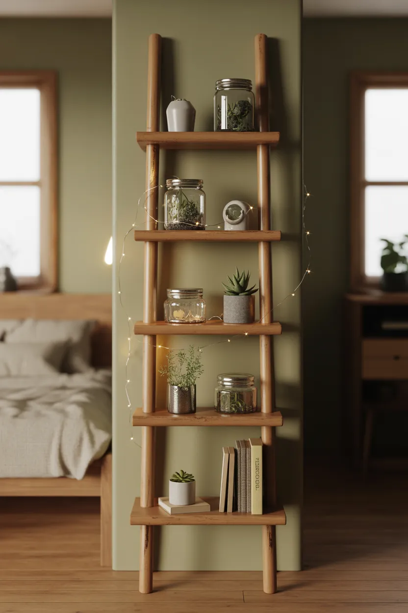 Vertical storage helps reduce clutter without taking up floor space. A slim ladder-style shelf creates multiple levels for organizing small items neatly. It fits well in tight corners and keeps essentials within reach.