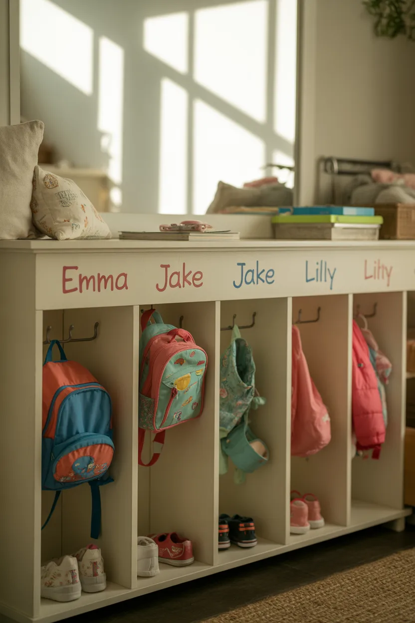 Giving each person their own cubby instantly brings order to a messy entryway. It creates clear boundaries where bags, coats, and accessories naturally belong. Adding hooks inside each section makes daily grab-and-go items easy to access, while a bench below adds comfort and keeps shoes from spreading out.