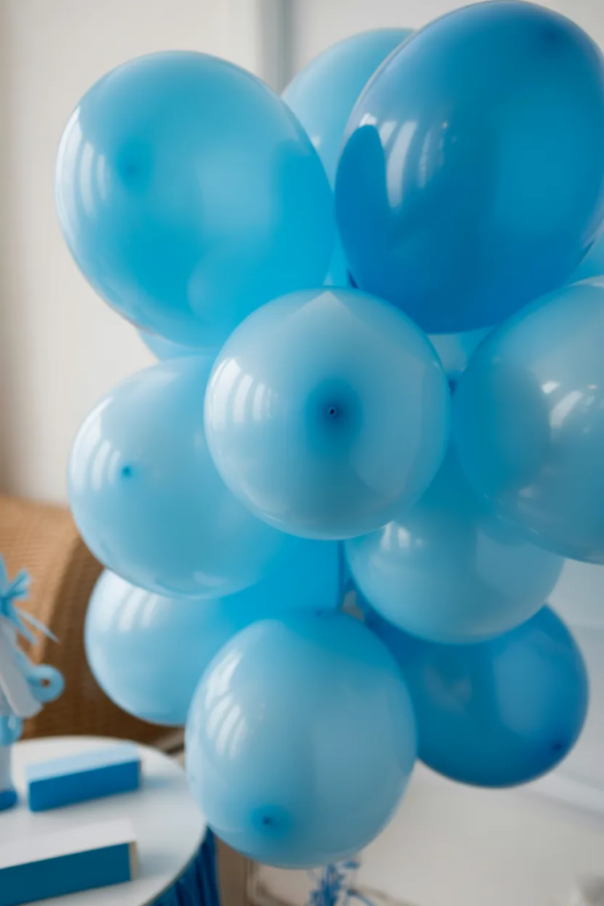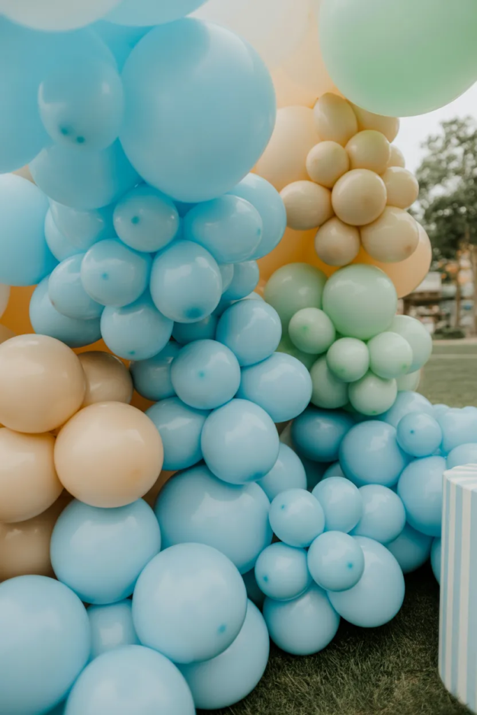 Stick to a simple color palette like blue, white, and green. Add one clean backdrop and a small balloon arrangement. This works well for indoor parties or smaller gatherings.
