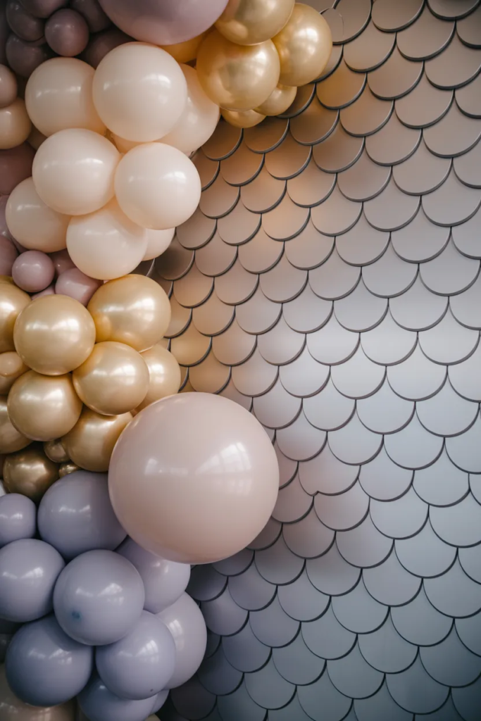 Balloon arches shaped like a mermaid tail can instantly become the centerpiece. Add simple props like shells, nets, or wooden crates to build depth. This kind of backdrop works especially well for photos.