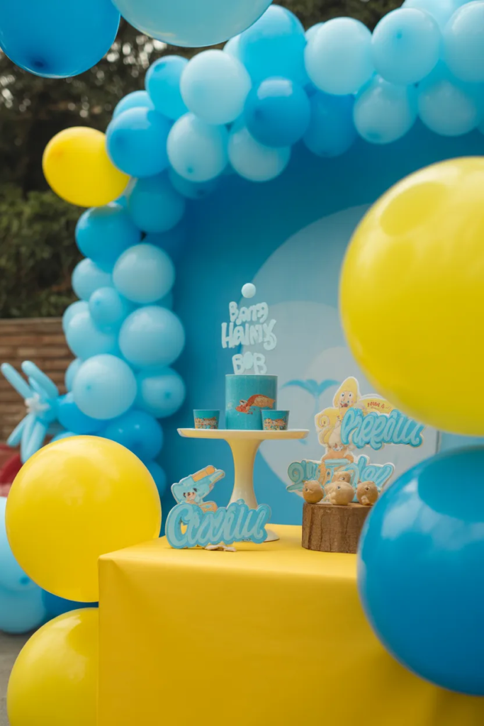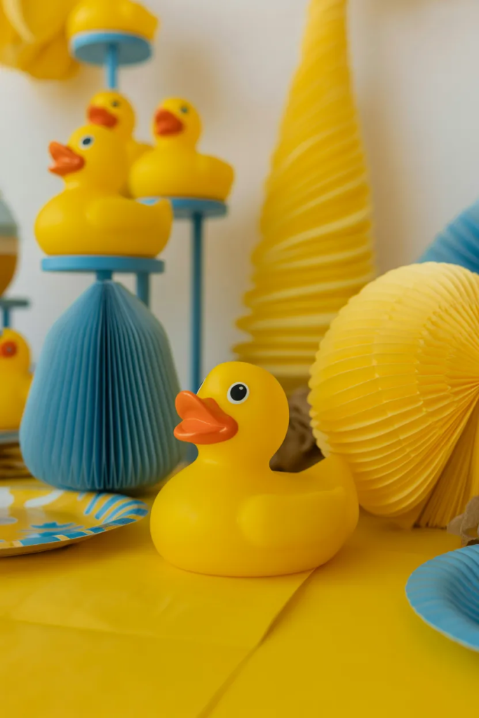 Yellow and blue decorations, inflatable ducks, and bubble-style balloons instantly create a fun atmosphere. It’s perfect for toddlers because it’s bright and playful without being overwhelming.