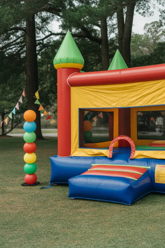 It keeps kids active and entertained throughout the party. Add a colorful balloon arch nearby to tie the whole setup together.