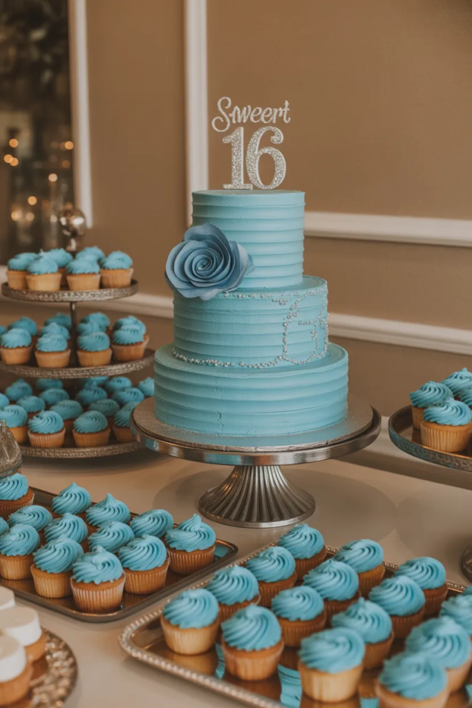 Stick to one color palette—blue shades with silver or white accents work beautifully. Matching desserts and décor create a clean look without much effort.
