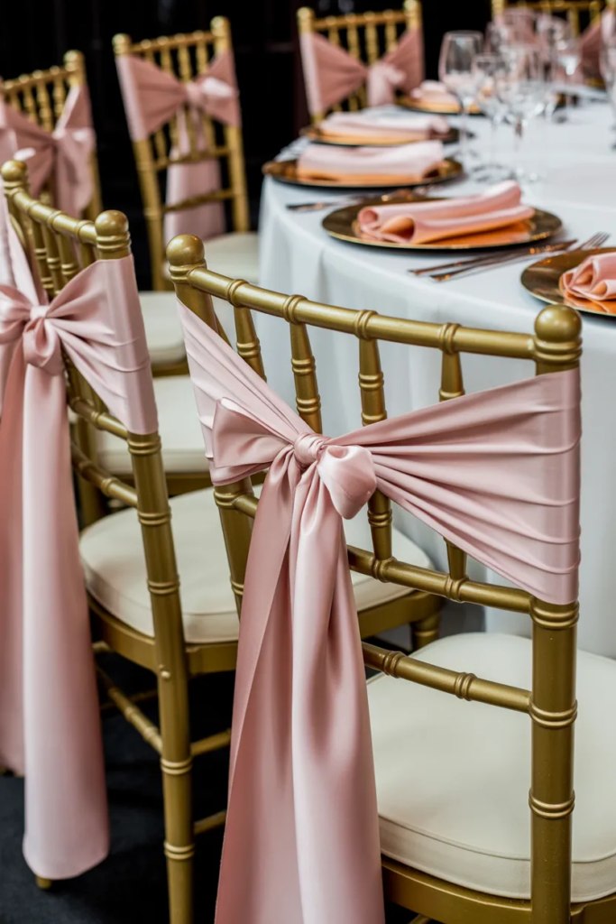 Adding satin bows to chairs instantly upgrades the look of your seating area.