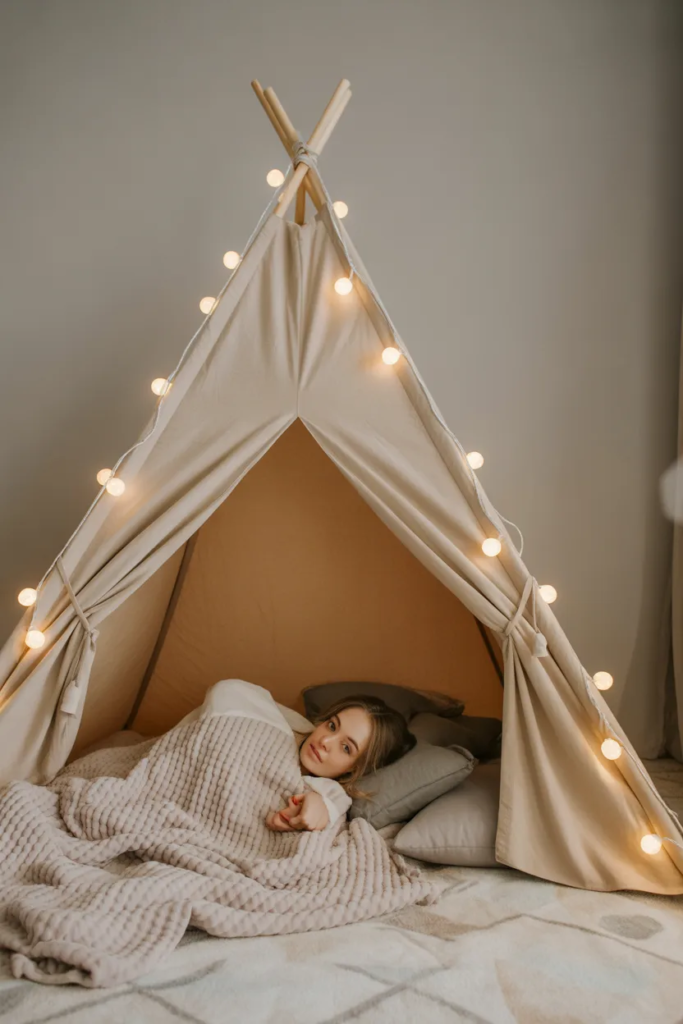 A teepee corner creates a chill space where guests can relax. It’s especially popular with smaller groups.