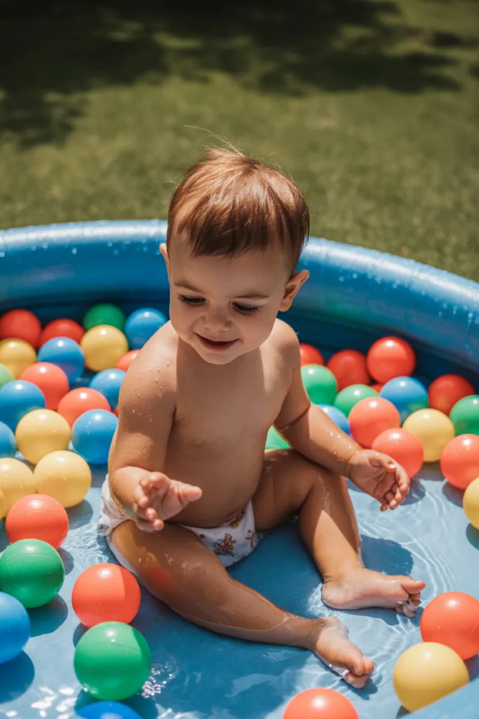 Just fill a small pool with plastic balls and a bit of water. It creates a soft and safe play area where toddlers can splash without too much mess or risk.