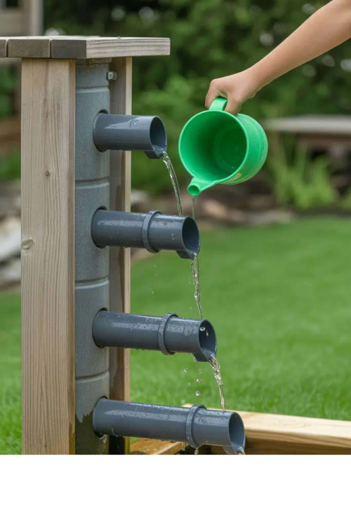 Using pipes or gutters, you can build a simple water wall where kids pour water and watch it flow. It’s fun and slightly educational too.