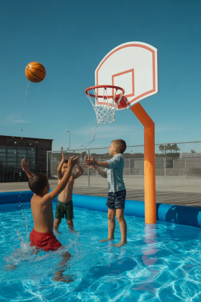 Floating hoops turn the pool into a mini basketball court. It’s great for friendly competition.