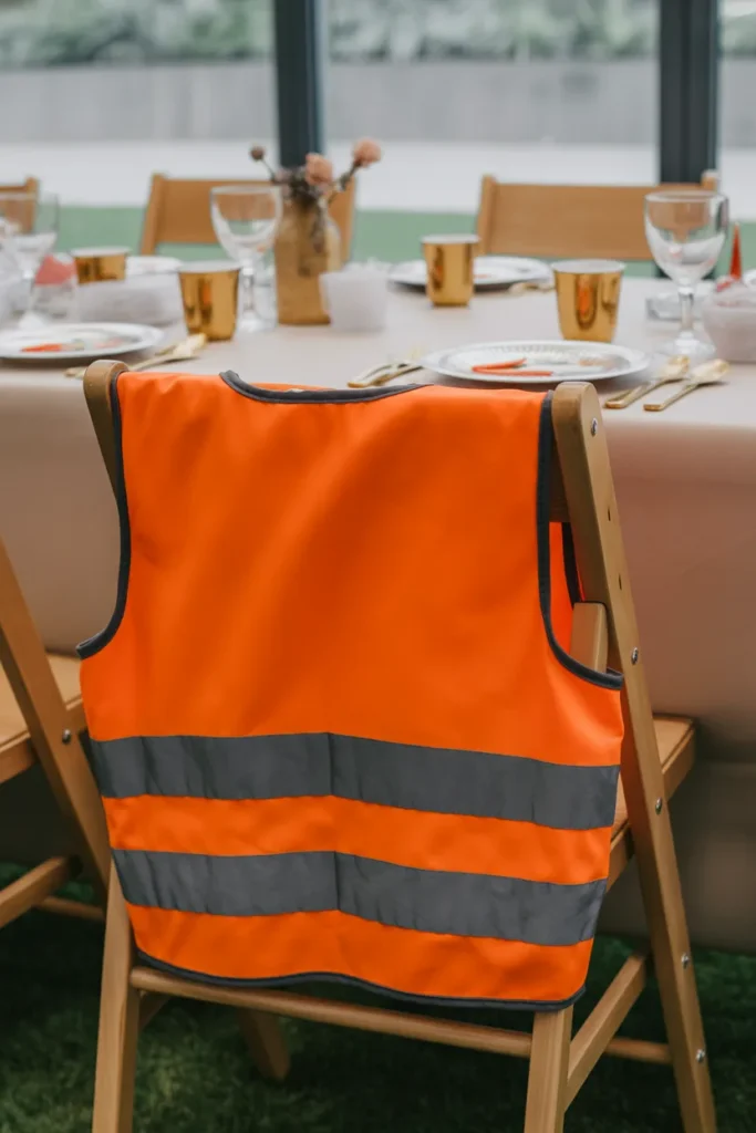 Adding safety vests to seating is one of those ideas that instantly makes the setup feel interactive. Kids love anything they can wear, and this small detail turns an ordinary chair into something fun and personal. It also keeps them engaged from the moment they sit down.